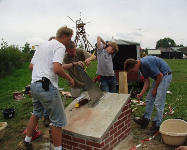 Das letzte Foto zeigt uns Tweety, Anderl, Marius und mich beim Ausrichten und Montieren des von Rainer